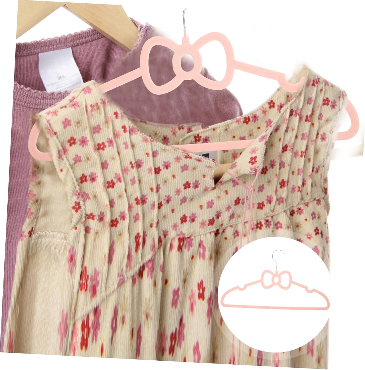 Package List 10 hangers Features -Color:Pink non-slip clothes hangers -Size: 42.00X21.00X0.50cm/16.51X8.25X0.20in closet clothes hangers -Product Info:Flocking Clothes Rack -Material:Flocking hangers for coat - With bow decor, the pants hangers are not easy to deform or break, suit clothes hangers. - Clothes are not easy to skid from the pants hangers for closet, useful design, reasonable structure hangers for women. - Adopting sturdy materials, this clothes hanger is safe and practical for lasting using hangers space saving. - Can be widely applied for hanging skirts, pants, dress, shirt, scarves easily, better meet your demands clothes coat garment jeans hangers. - The clothes hangers are suitable for closet organizer, keep your wardrobe cleaner and more orderly hangers clothing.Goods Informationcloset hangers With high hardness, not easy to deform, which brings you huge convenience.garment hangers Using safe materials, the coat hangers are very practical and for long term to use.bow hangers That's because our clothes hangers can satisfy your needs.hangers for dress If you are in search of some professional and portable clothes hangers, then your research is over here