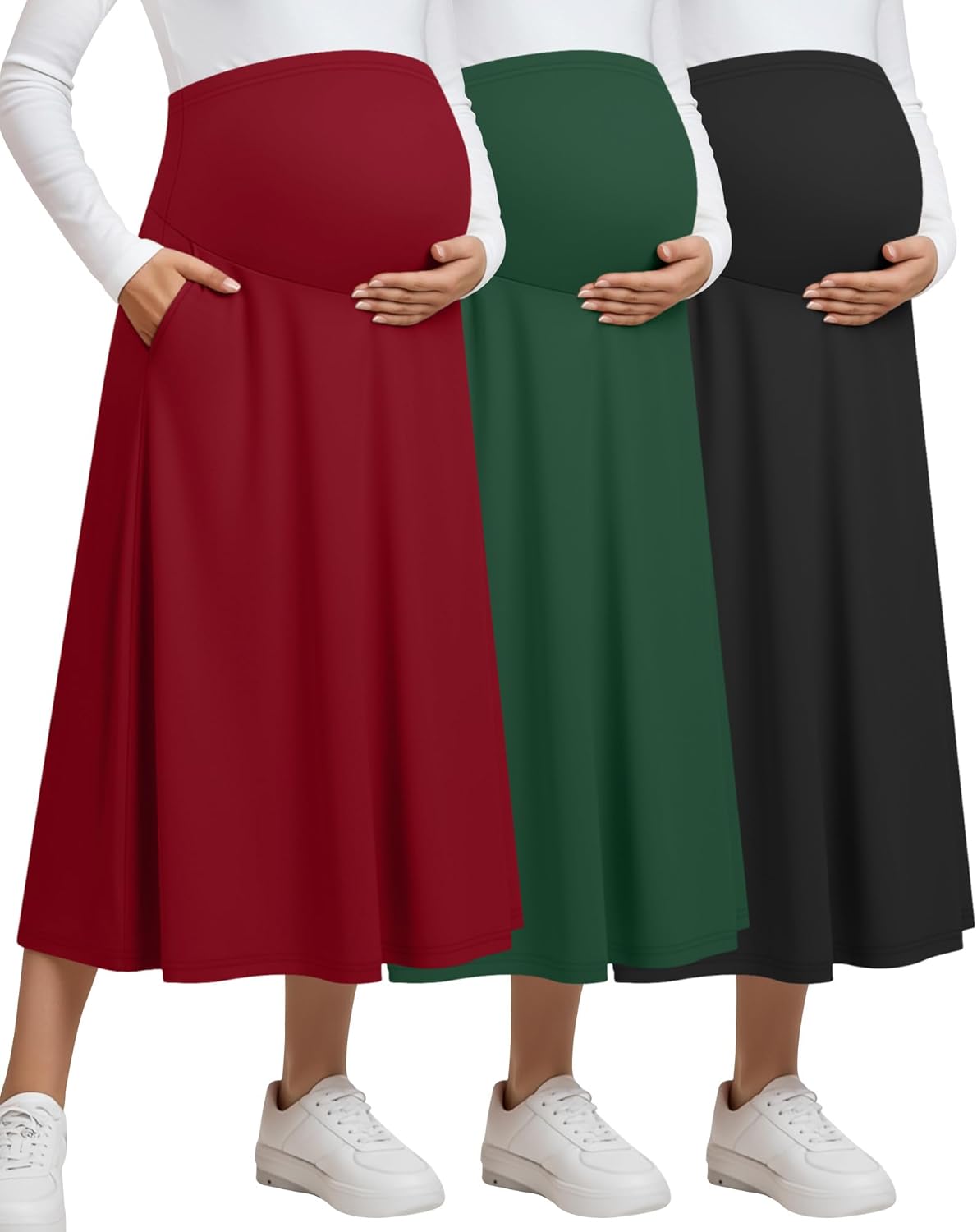 Features: Size selection: Please check our size chart before you place order for comfortable wearing. Garment: Machine washable or hand wash with cold water, easy to wash and dry, hang or line dry Material: 80% Polyester, 10% Cotton, 10% Spandex Package includes: 3 x Women's maternity maxi long skirts Notes: Manual measurement, please allow slight errors on size. The color may exist a slight difference due to different screen displays