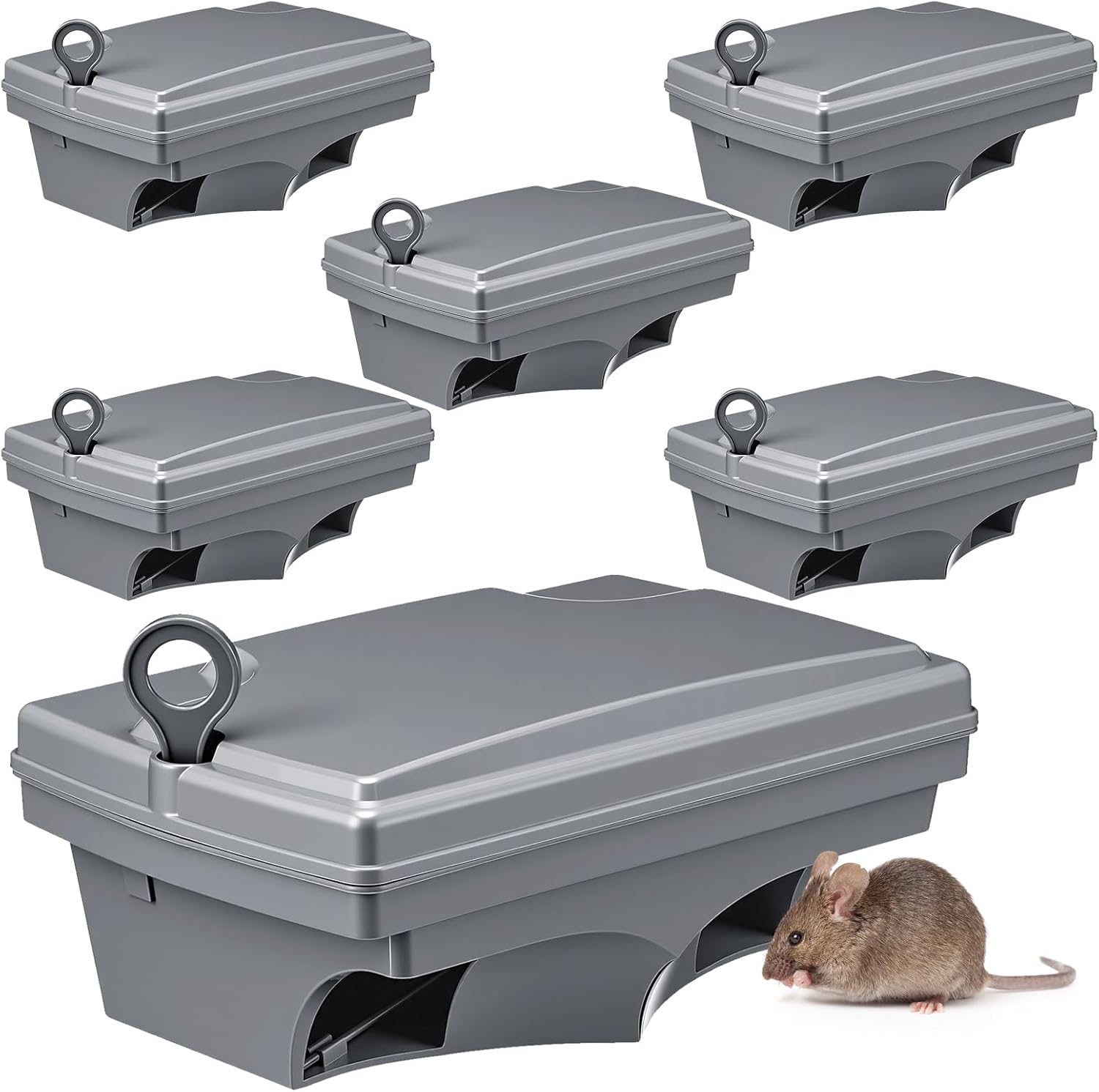 Features: Share with others: The rat bait is a practical gift for your family members, friend, relatives, neighbors, colleagues and more, who will be delighted to receive such functional tools, showing your care. Easy to assemble: The pest control traps are easy and convenient for you to install, you just need to unlock the top with the included key and add some bait (not included), then place it in secluded areas where rodents like to hide, saving your time and energy. Specifications: Material: plastic Color: black Size: approx. 10.6 x 6.7 x 4.5 inches /27 x 17 x 11.5 cm Package includes: 6 x Rat bait station with key Notes: Manual measurement, please allow slight errors on size. The color may exist a slight difference due to different screen displays. Pointed parts included, please keep away from little kids. Small items, please keep away from little kids to avoid swallowing