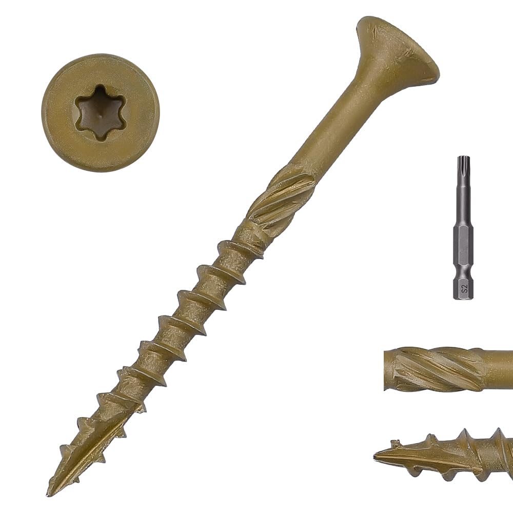 Countersunk Flat Head (w/ Torx T25) For invisible, flush-mount applications Seamless finish: Sits completely level with wood surfaces Prevents snagging: Ideal for decks, flooring, and furniture Torx advantage: Zero cam-out during deep sinking Best for: Hidden joints in hardwood decking & cabinetry