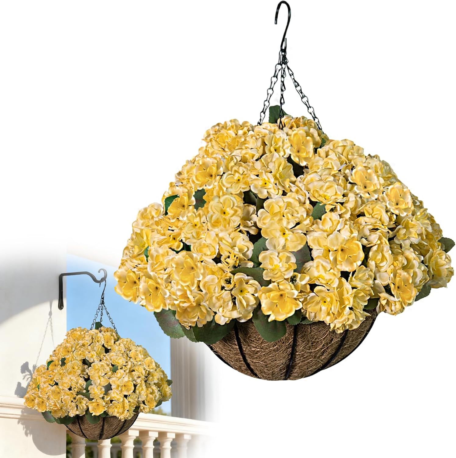 An Ever-Blooming Cascade of Color: Features a densely packed, cascading design with 12 lifelike geranium stems for immediate fullness. Crafted with UV and weather-resistant materials for vibrant, fade-resistant outdoor use. Includes a natural-look coconut fiber basket with a secure metal hook and chain for easy hanging. Stems can be arranged in the included artificial grass ball base or used separately in vases for versatile decorating. Offers 100% maintenance-free beauty, with no watering or pruning ever needed. Makes a perfect, long-lasting gift for any occasion, bringing instant charm to porches, patios, and balconies. Specifications: Product Name: Artificial Geranium Hanging Basket Color Options: White/Red/Yellow/Pink/Orange/Rose Quantity: 1 Hanging Basket Total Length (Hook to Bottom): 20.86 inches (approx. 53 cm) Basket Diameter: 11.8 inches (approx. 30 cm) Flower Stems: 12 Individual Artificial Geranium Stems Materials: Faux Flowers & Leaves, Coconut Fiber Basket, Metal Hook & Chain Applicable Scenarios: Perfect for adding a pop of color and life to your Front Porch, Back Patio, Garden Pergola, Balcony Railing, Doorway Entrance, Sunroom, or as vibrant Indoor Decor in living rooms and kitchens. Decoration Suggestion: Hang this lush basket on a shepherd's hook in your garden to create a focal point, or from the eaves of your porch for a classic welcoming touch. For a creative twist, detach the stems and arrange them in your favorite vase for a beautiful table centerpiece, or mix them with other faux greens in a large planter. Use your imagination to layer these timeless blooms anywhere you desire lasting beauty without the work. Package Includes: 1 x Artificial Grass Ball 1 x Hanging Basket 12 x Artificial Geranium Stems Kind Reminder: Please read before purchasing 1. A temporary plastic odor may occur after shipping; simply air outdoors for a short time to refresh. 2. Though UV-resistant, prolonged intense sun may gradually affect color over many seasons. After-sales Service: If you have any questions about artificial plants, please feel free to contact us. We will reply and solve your problems within 24 hours. Wishing you a wonderful day!
