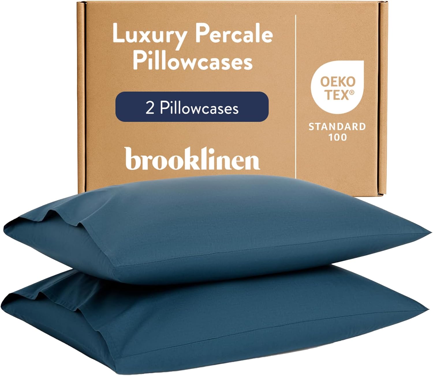 Elevate your bedding game with the Brooklinen Luxury Percale Pillowcases, designed for those who appreciate both comfort and quality. Transform your nightly routine with our percale pillowcases, designed to deliver the perfect balance of crisp comfort, breathability, and timeless elegance. Crafted with a lightweight percale weave, these pillowcases bring a cool, refreshing touch to your bedding, making them ideal for hot sleepers and anyone who values restful nights. Designed to fit standard pillows for bed, each pillowcase measures 27"L x 20" W and comes in a convenient set of 2. For those with larger bedding needs, these pillowcases are also available in king pillowcases, designed to fit king size pillow (37"L x 20" W), Made from 100% cotton pillowcases, this set offers natural softness and durability that synthetic blends can’t match. The crisp texture feels smooth against your skin while maintaining its refined appearance even after repeated washes. The set includes two percale pillow cases, tailored with precision stitching and a classic hem. Designed to slip easily over pillows and stay in place, they create a polished look that enhances any bedroom décor. Their versatile white color pairs effortlessly with any bedding style, from modern minimalism to classic luxury. Beyond comfort and design, these cotton percale pillowcases are crafted with sustainability in mind. The use of organic cotton ensures a product that’s gentle on the environment as well as on your skin. Breathable, eco-conscious, and easy to care for, they’re the ideal choice for those who value both quality and responsibility.