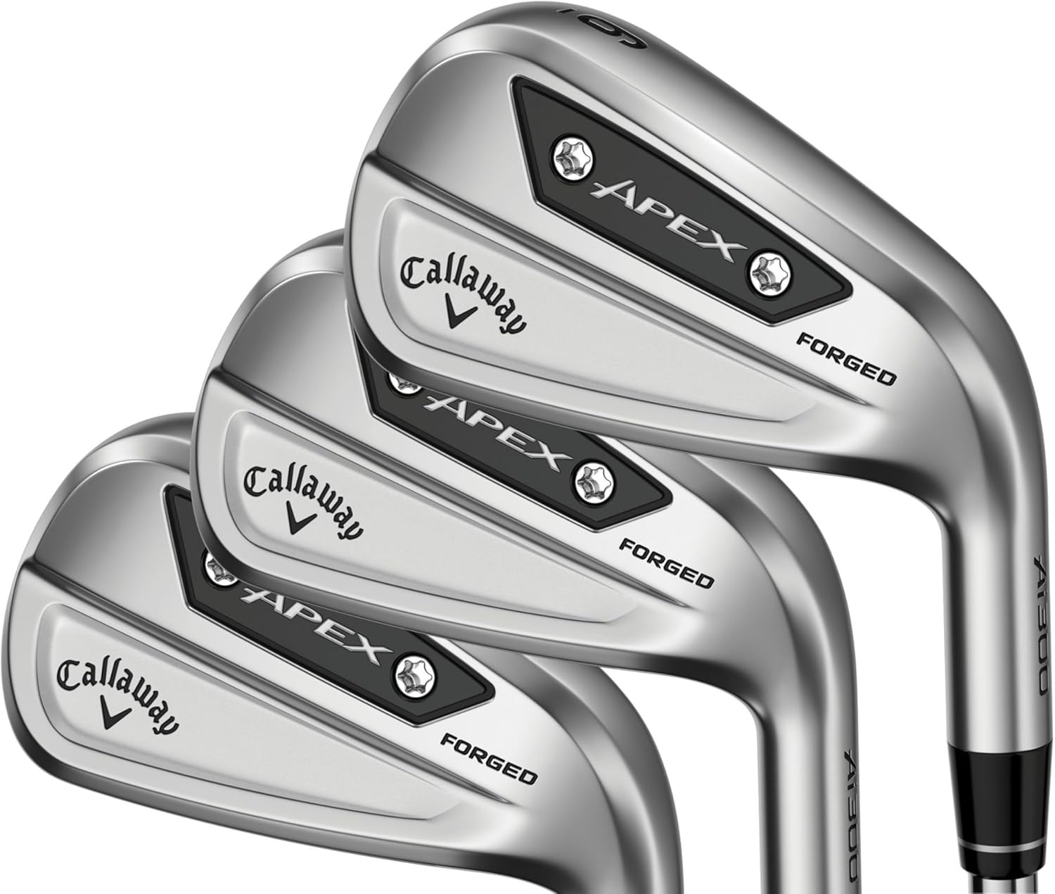 Apex Ai300 Irons Apex Ai300 Irons are meticulously designed for pure feel, power, and consistency. These elegant cavity-back designs feature a slightly larger profile that blends performance and forgiveness in our most complete game-improvement iron, delivering performance that stands alone. PREMIUM LOOK AND FEEL A forged hollow-body combined with a forged 455 face creates a tour-level sound and feel. This advanced forged construction is coupled with a stunning, premium design that will captivate you more than ever before. OUR MOST COMPLETE PLAYER'S DISTANCE IRON In addition to enhanced feel, the forged 455 Face Cup delivers outstanding power across the face. This unique combination of power and feel separates the Apex Ai300 from the rest. INCREDIBLY CONSISTENT BALL SPEED, SPIN, AND DISPERSION The Apex Ai300 achieves incredible consistency through the Ai Smart Face. Using real golfer swing data combined with artificial intelligence, the Ai Smart Face generates outstanding speed and spin consistency with tight dispersion into greens.