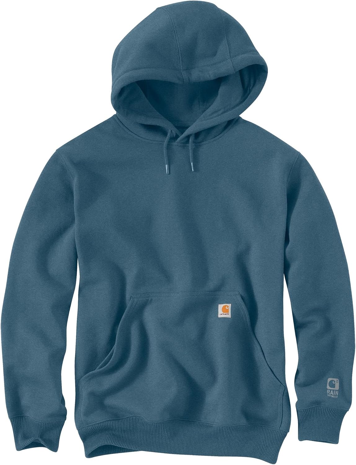 Born in 1889 and built from grit, Carhartt is the brand hardworking people count on to get the job done. We make durable women’s, kids’, and men’s clothing and gear designed to last whether it’s the Carhartt hat, hoodie, and sweatshirt you reach for daily or a Carhartt jacket you throw on in the toughest conditions. We’re much more than a maker of workwear and clothes. We’re the official uniform for those who choose to tackle any rugged corner of the earth. When the job calls and the clouds roll in, Carhartt Rain Defender® hoodies for men have you covered. This heavyweight hoodie pairs the broken-in comfort of your favorite sweatshirt with durable water repellant technology that keeps light rain from slowing you down at work—or wherever the day takes you. Wear it solo as a pullover hoodie or throw a Carhartt jacket over it when the rain starts to fall, and you won’t feel a drop in performance. It’s the kind of rain gear that belongs in every hardworking pro’s workwear rotation or one of those perfect gifts for men who want to stay dry and warm while getting stuff done.