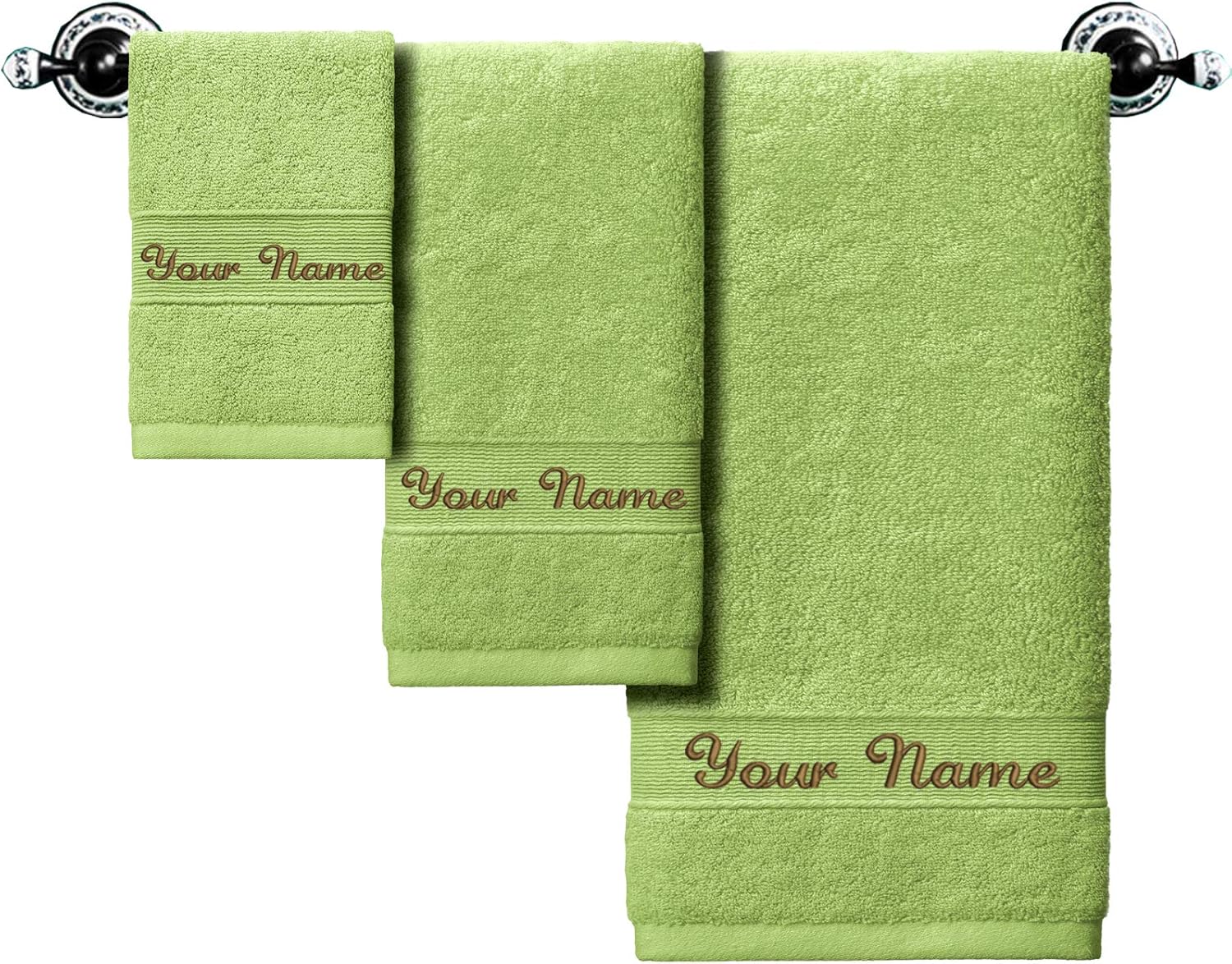 Specifications:- Comprised of 100% cotton material. Strong water absorption, fast drying and easy to clean. -So Classic and practical, feature your family, friend, lover's name - The Ingenious personalized custom gifts for someone who has everything. - These lovely, luxury towels will add a touch of class to any bathroom. Size:-Bath Towel: Used to wipe and cover the body after bathing(27.5" x 55.1" inches) -Hand Towel: Used to dry hands and as decoration (13.5" x 29.5"inches) -Washcloth: Used to clean face or dry hands (13.5"x13.5"inches)Personalized Customization: Custom embroider a name in your choice of multiple thread colors and font options: Design a unique and practical gift for your family, love, and friends.