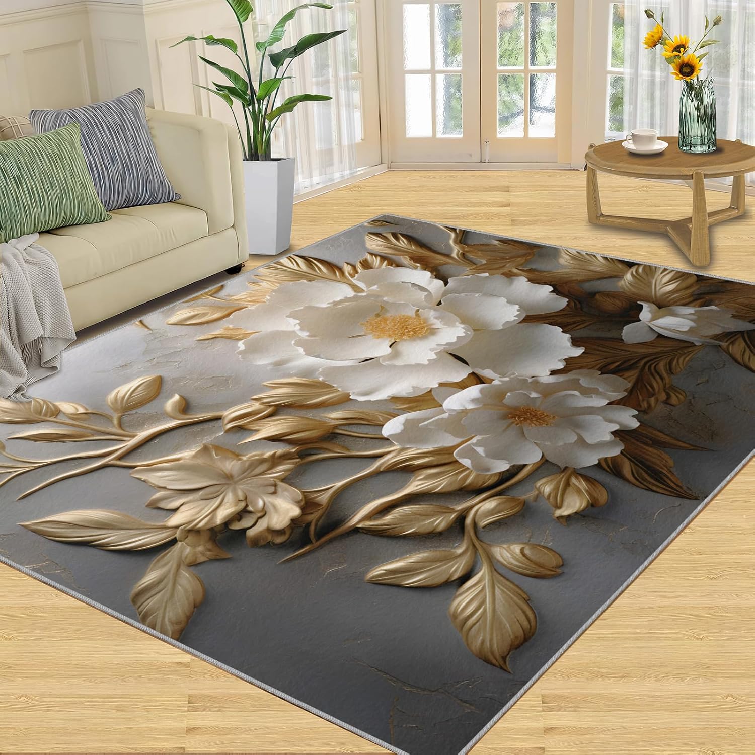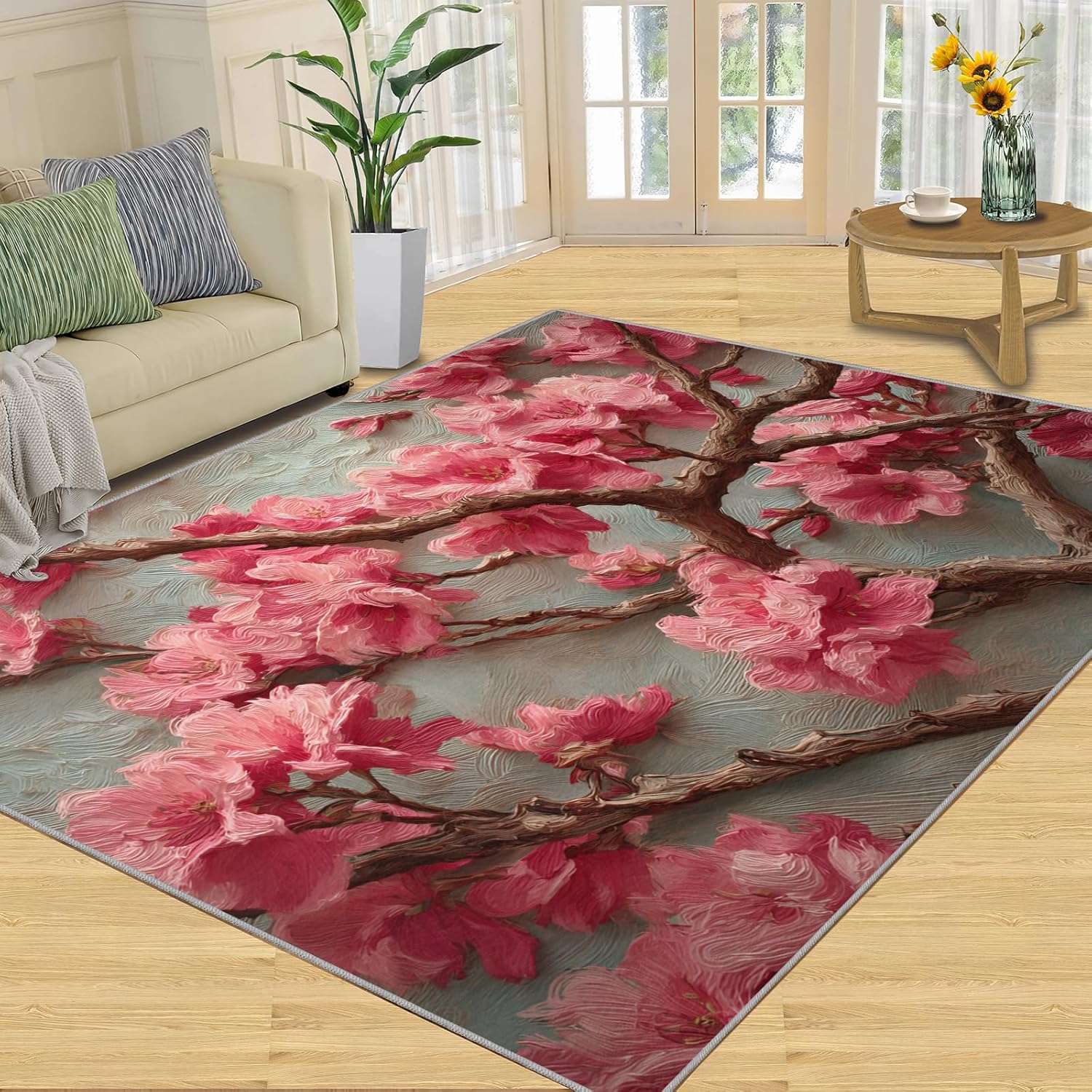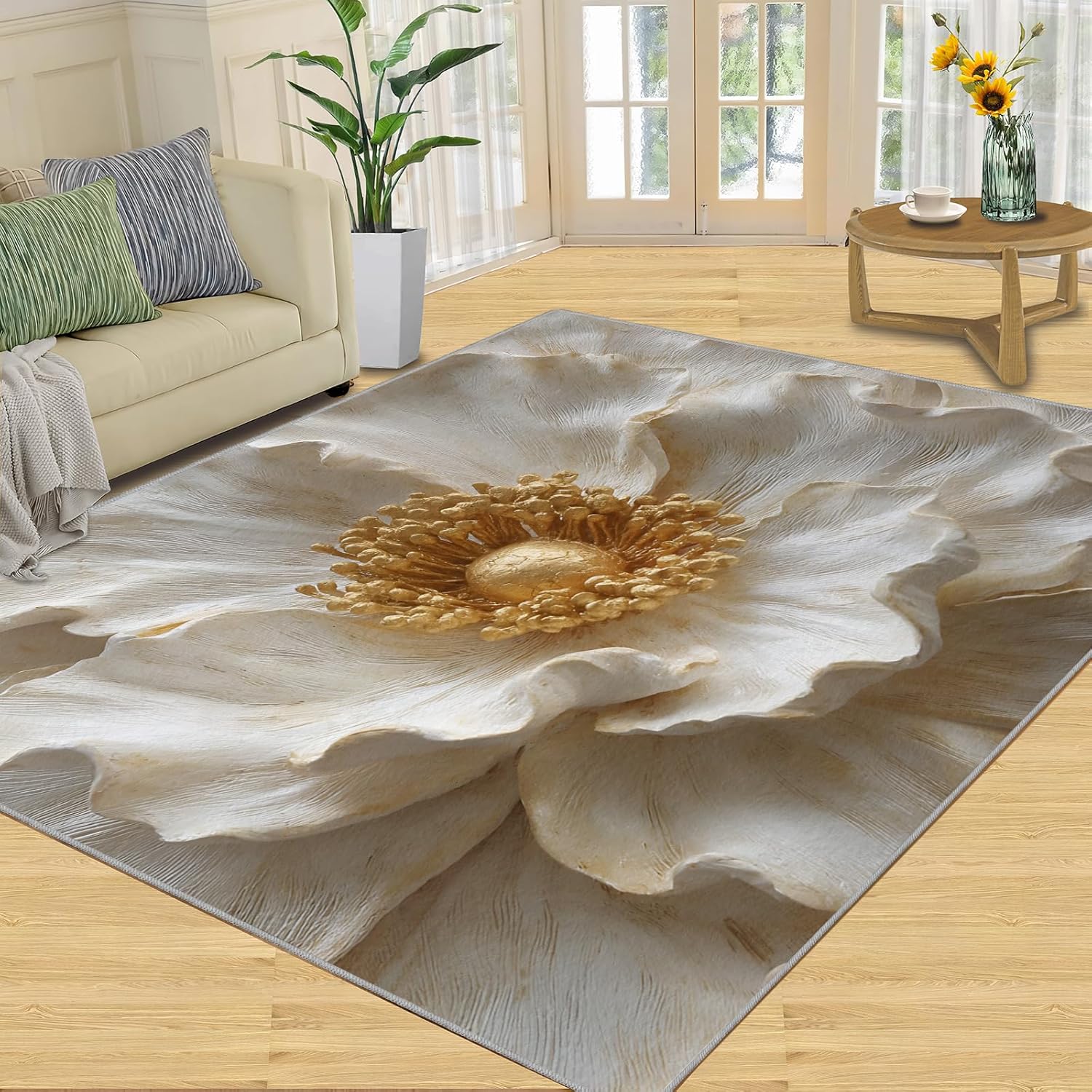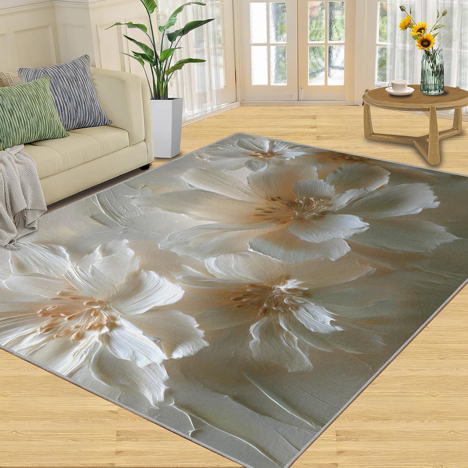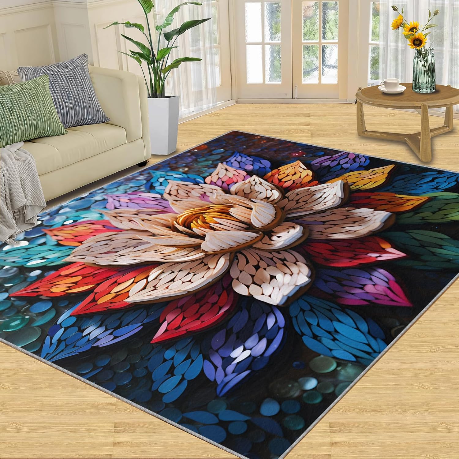 Printed rug add color to your life, will be the centerpiece of any spaceFeatures:Exclusive DesignArea Rugs adopt digitally printed and heattransferred technology to achieve clear patterns, bright colors and long-lasting effects. Print rug has a trendy style and a unique pattern to bring any room aliveSoft SurfaceArea rugs are made of natural flannel fabric, super soft to the touch.Soft low pile rugs can soothes tired feet, and reduces the noise when walking and creates a quiet environment for youNon Slip BackingNon slip rug features a reliable anti-slip backing, effectively preventing slips and trips. This ensures a safer environment for your children and pets to play. Ideal for indoor high-traffic areas, providing peace of mind and safety for daily useReinforced EdgeOur washable rug has high-density stitched edges that make him stronger and not easy to loose and can make area rugs last longerWide UseWhether placed in living room, dining room, kitchen, dorm, porch, office, kids' room, or bedrooms, this rug effortlessly complements your home decorMachine WashableRug is machine washable. It is recommended to wash them in cold water. If small dust and dirt on the surface, you can clean it with a rag, broom, or vacuum cleaner. Avoid using bleach and high-temperature ironingPile Height: 0.31inchMaterial : Natural flannel fabric,Sponge layer,Non slip dots bottomSize: 4x6 ft /120x180 cmWeight: 4.84 poundsPackage List:Area rug × 1Please Note:1.Due to different monitors, the actual color may differ slightly from the picture, please refer to the actual product2.Due to different measuring tools, there may be a deviation of ±2%