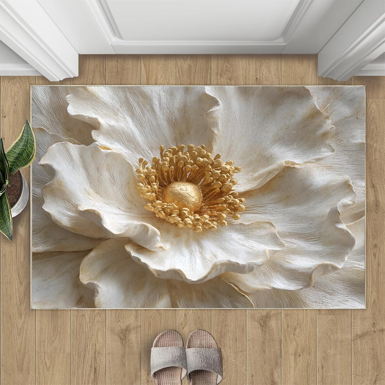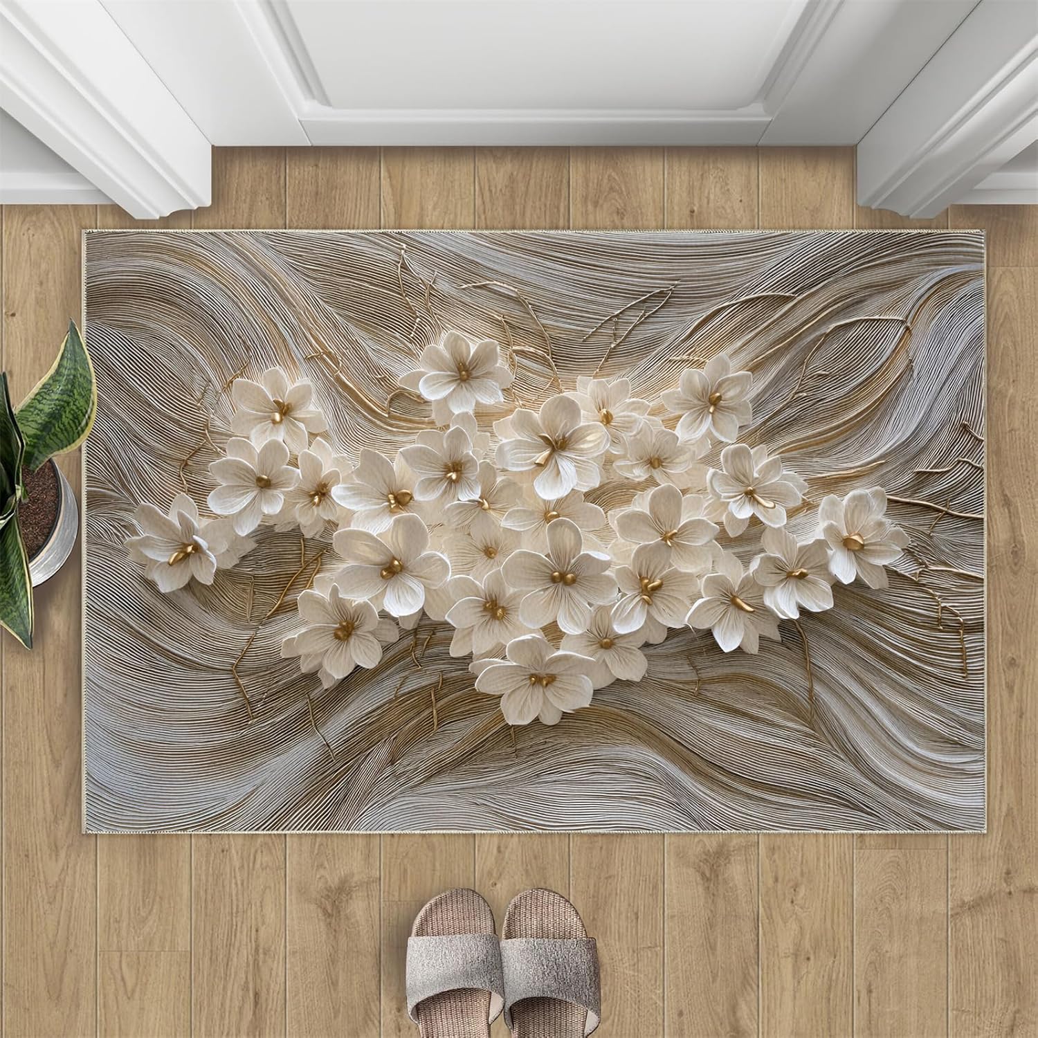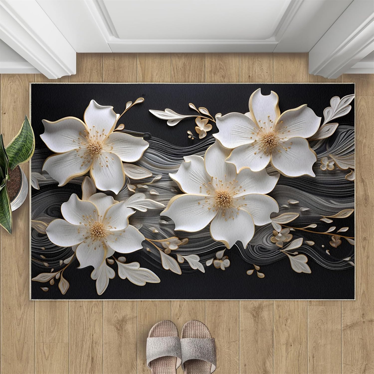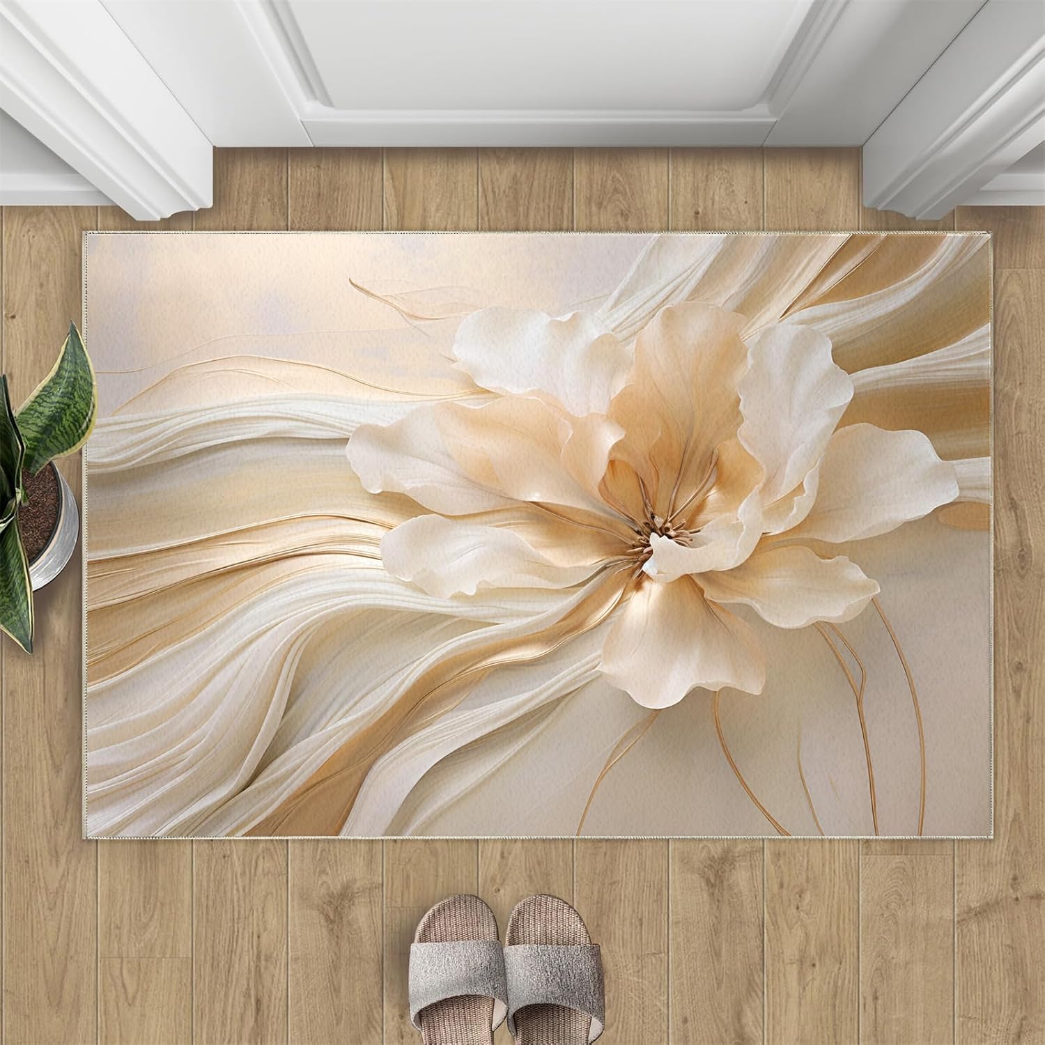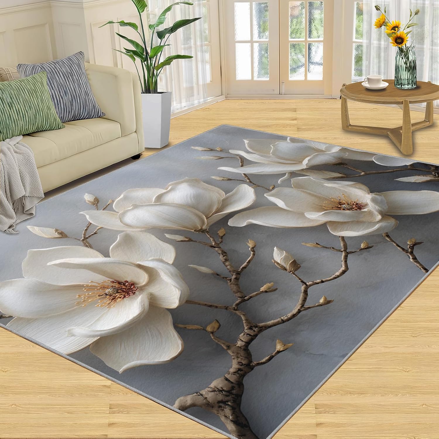 Printed rug add color to your life, will be the centerpiece of any spaceFeatures:Exclusive DesignArea Rugs adopt digitally printed and heattransferred technology to achieve clear patterns, bright colors and long-lasting effects. Print rug has a trendy style and a unique pattern to bring any room aliveSoft SurfaceArea rugs are made of natural flannel fabric, super soft to the touch.Soft low pile rugs can soothes tired feet, and reduces the noise when walking and creates a quiet environment for youNon Slip BackingNon slip rug features a reliable anti-slip backing, effectively preventing slips and trips. This ensures a safer environment for your children and pets to play. Ideal for indoor high-traffic areas, providing peace of mind and safety for daily useReinforced EdgeOur washable rug has high-density stitched edges that make him stronger and not easy to loose and can make area rugs last longerWide UseWhether placed in living room, dining room, kitchen, dorm, porch, office, kids' room, or bedrooms, this rug effortlessly complements your home decorMachine WashableRug is machine washable. It is recommended to wash them in cold water. If small dust and dirt on the surface, you can clean it with a rag, broom, or vacuum cleaner. Avoid using bleach and high-temperature ironingPile Height: 0.31inchMaterial : Natural flannel fabric,Sponge layer,Non slip dots bottomSize: 4x6 ft /120x180 cmWeight: 4.84 poundsPackage List:Area rug × 1Please Note:1.Due to different monitors, the actual color may differ slightly from the picture, please refer to the actual product2.Due to different measuring tools, there may be a deviation of ±2%
