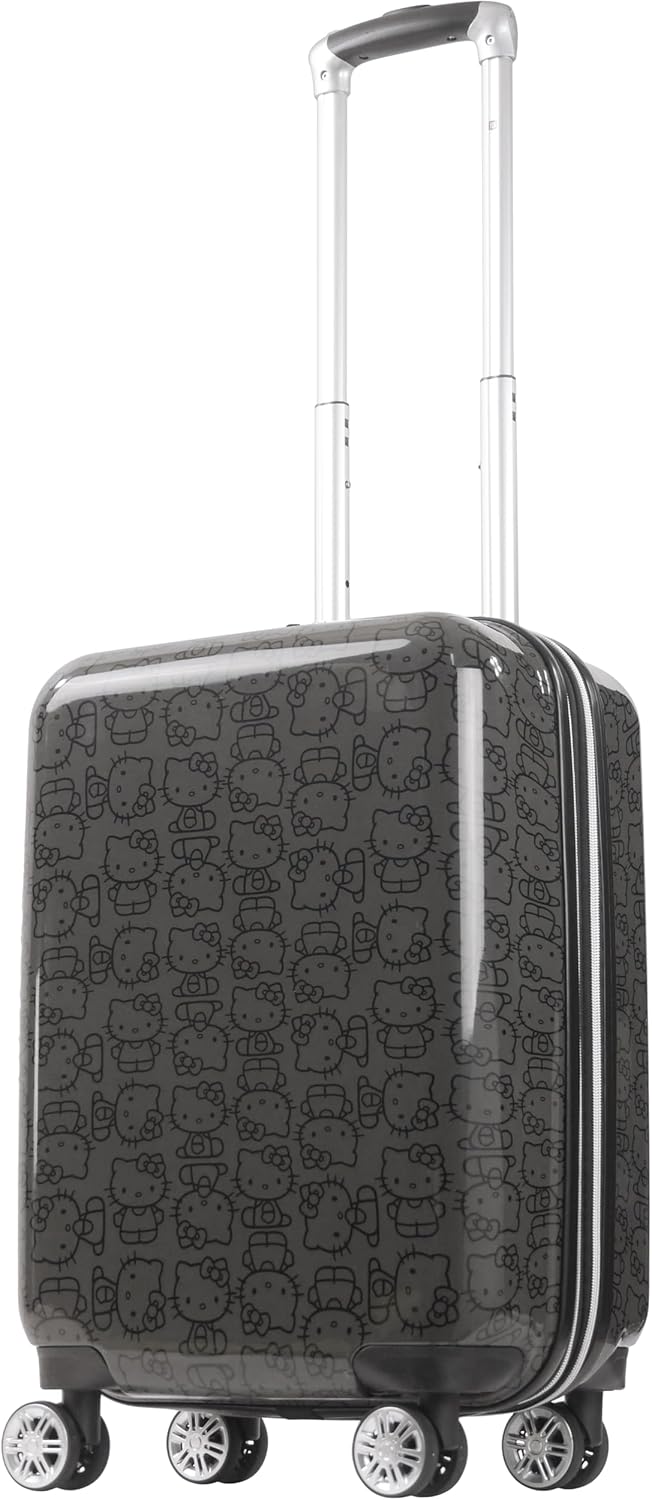 Keep your belongings conveniently and efficiently stored in one place while breezing through the airport or hotel lobby with this adorable Hello Kitty pink rolling luggage on wheels. Designed with a stylish, eye-catching Hello Kitty pattern, this 8 wheel hard shell carry on luggage features eight 360 degree multi-directional spinner wheels with to allow for smooth travel over all types of textured surfaces, and the lightweight hard sided luggage with spinner wheels features a retractable pull handle so you can reach your destination without hassle. The hard case luggage garment bag a sizable polyester-lined main zip compartment for easy packing, a zip wet dry compartment for personal essentials, 2 mesh zip pockets for small accessories, clothing compression straps to keep clothing from wrinkling, and features expandable storage with 2-inch zipper gusset. The light weight carry on luggage roller features a hard shell ABS plastic case which protects your luggage and is easy to spot clean to keep the carry on luggage with wheels looking stylish during travel. The small size travelling bags with wheels measure 21.5 H x 14 W x 9.5 D in inches and weigh 2.8 lbs