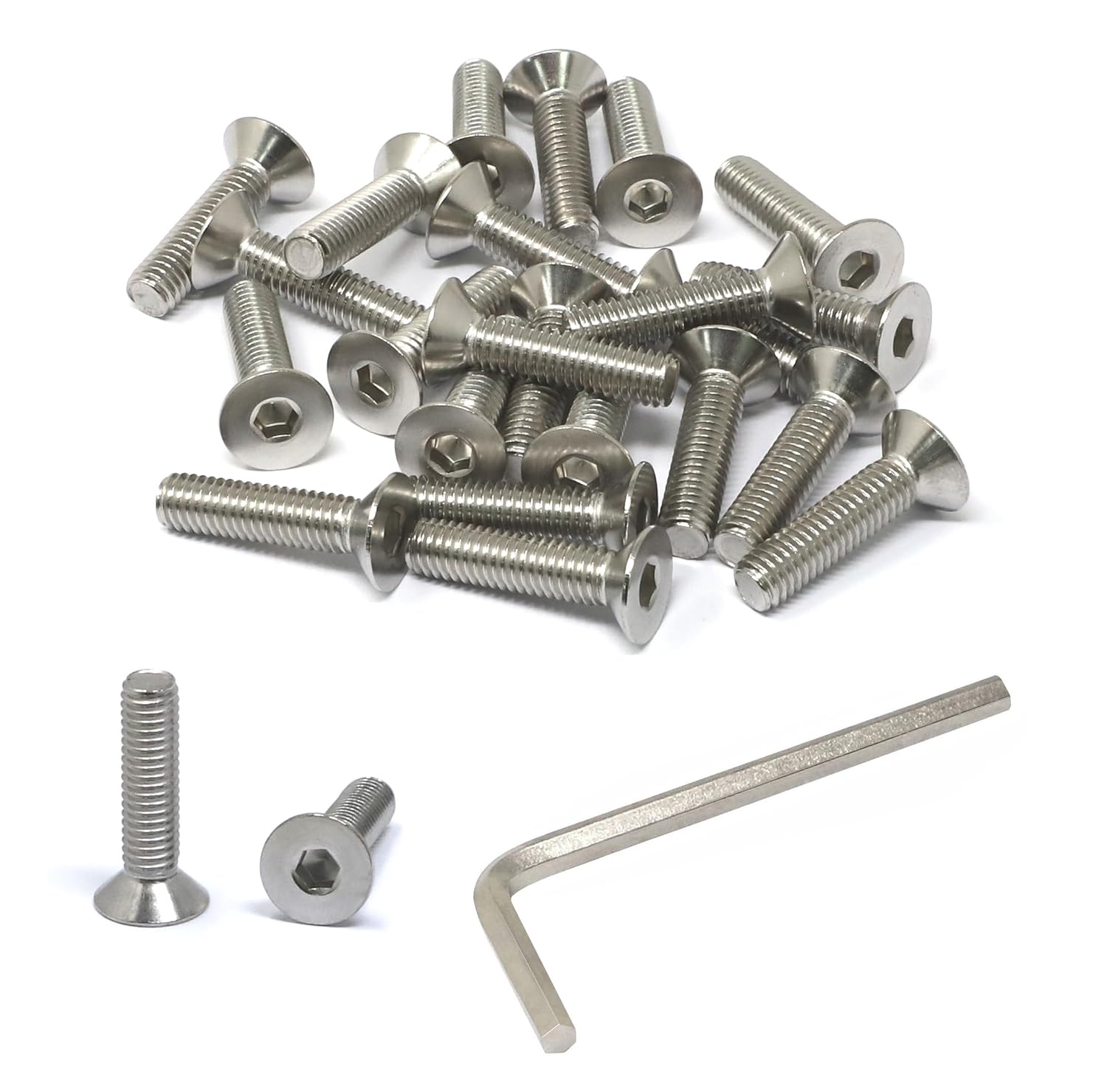 【100 Pcs M2 x 3mm Hex Socket Flat Head Cap Screws + 1 Pcs Hex Key Come In a Plastic Storage Box】 ✔ Contains 100 Pcs M2 x 3mm hex socket flat head cap screws --Meets/exceeds: DIN7991 --Thread size ( diameter ): 2 mm --Thread Pitch: 0.4 mm --Total length ( includes head ): 3 mm ( Range: 3.00 ± 0.24 mm), thread length (approximate ) 1.8 mm --Screw head style: flat head, known as countersunk head, countersunk angle: 90 degree, head diameter: 3.85 mm ( Range: 3.85 ± 0.15 mm ), head length (approximate ) 1.2 mm --Screw drive style: hex socket drive, also known as internal hex drive, hex size: 1.3 mm --Made of Stainless steel 304, high strength and anti-corrosion in various conditions ✔ Contains 1 Pcs hex key to drive these screws conveniently and easily --Hex size: 1.3 mm --Made of chrome-vanadium steel, nickel plated, higher strength, anti-rust ✔ Easy to store: these 100 pcs hex socket flat head cap screws and 1 pcs hex key come in a plastic storage box, organized conveniently and easily [ Package Contains ] M2 x 3mm-----100 Pcs Hex Key------1 Pcs [ What is Hex Socket Drive ] Hex Socket Drive, also known as Internal hex drive, have a hexagonal hole in the center that requires an Allen key, also known as a hex key or Allen wrench [ What is Flat Head ] Flat head is similar to standard pan head screws but have a curved top