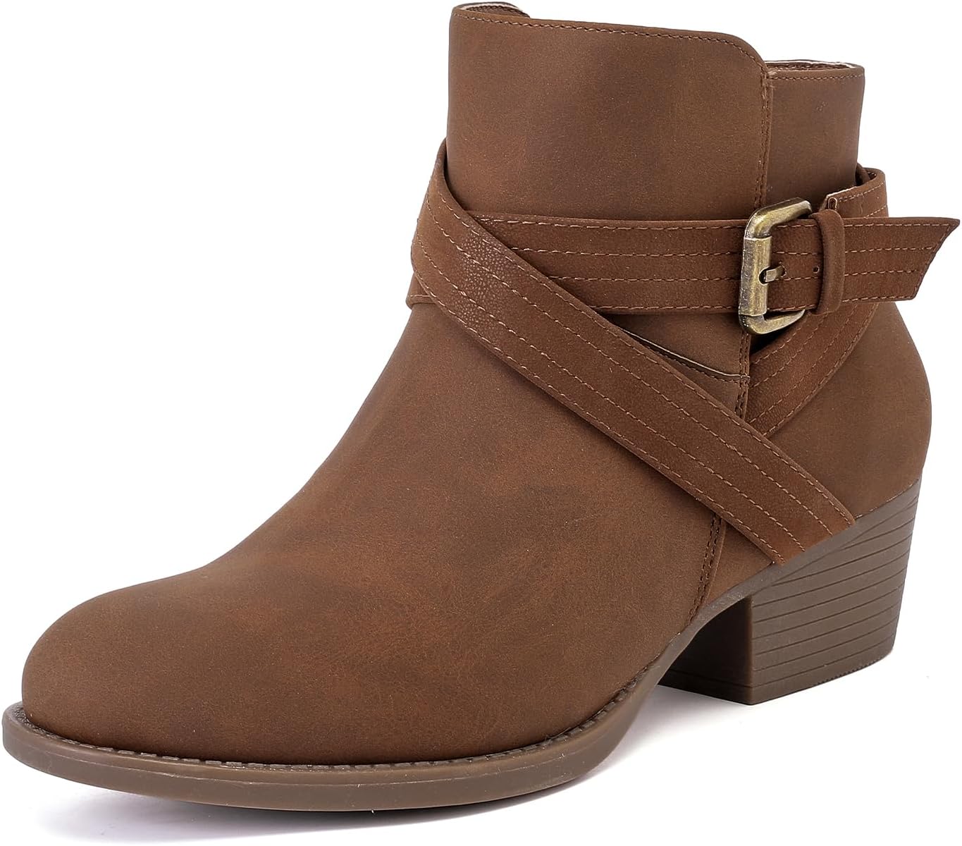 Luoika Women's Wide Width Ankle Boots - Black Brown Short Boots Block Low Heel Side Zipper Booties.