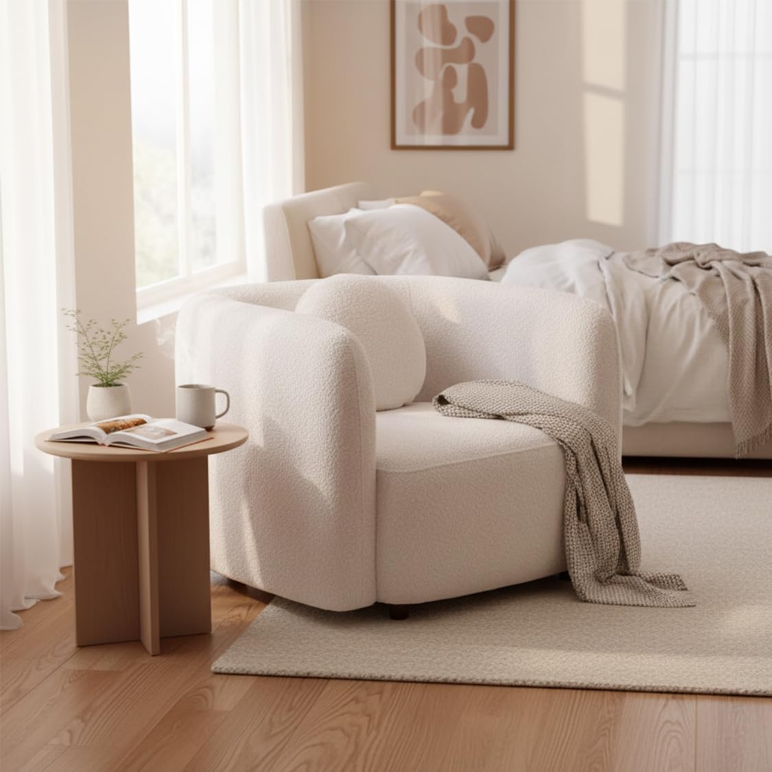 Enhance your living space with the mr.waiba Boucle Swivel Accent Chair, a perfect combination of modern style and cloud-like comfort. Upholstered in soft teddy boucle fabric, this swivel barrel chair delivers gentle support and a cozy seating experience ideal for living rooms, bedrooms, apartments, or offices. Its ergonomic backrest and curved armrests provide superior comfort for reading, lounging, or relaxing, while the 360° swivel function allows effortless movement and conversation.Designed with a minimalist, contemporary silhouette, this accent chair for small spaces seamlessly complements any décor style, from modern and mid-century to luxury interiors. The high-density foam cushions maintain their shape over time, ensuring a plush, supportive seat every day. Whether you need a living room chair, bedroom accent chair, or a versatile small swivel chair, this piece adds both function and style to your home.Quick and easy assembly makes it convenient for any space, and the durable construction ensures long-lasting use. Backed by a 10-member professional after-sales team, any questions or concerns are addressed within 24 hours, giving you complete peace of mind. Elevate your home with this boucle accent chair, combining aesthetic elegance, ergonomic design, and practical versatility for all your living spaces.