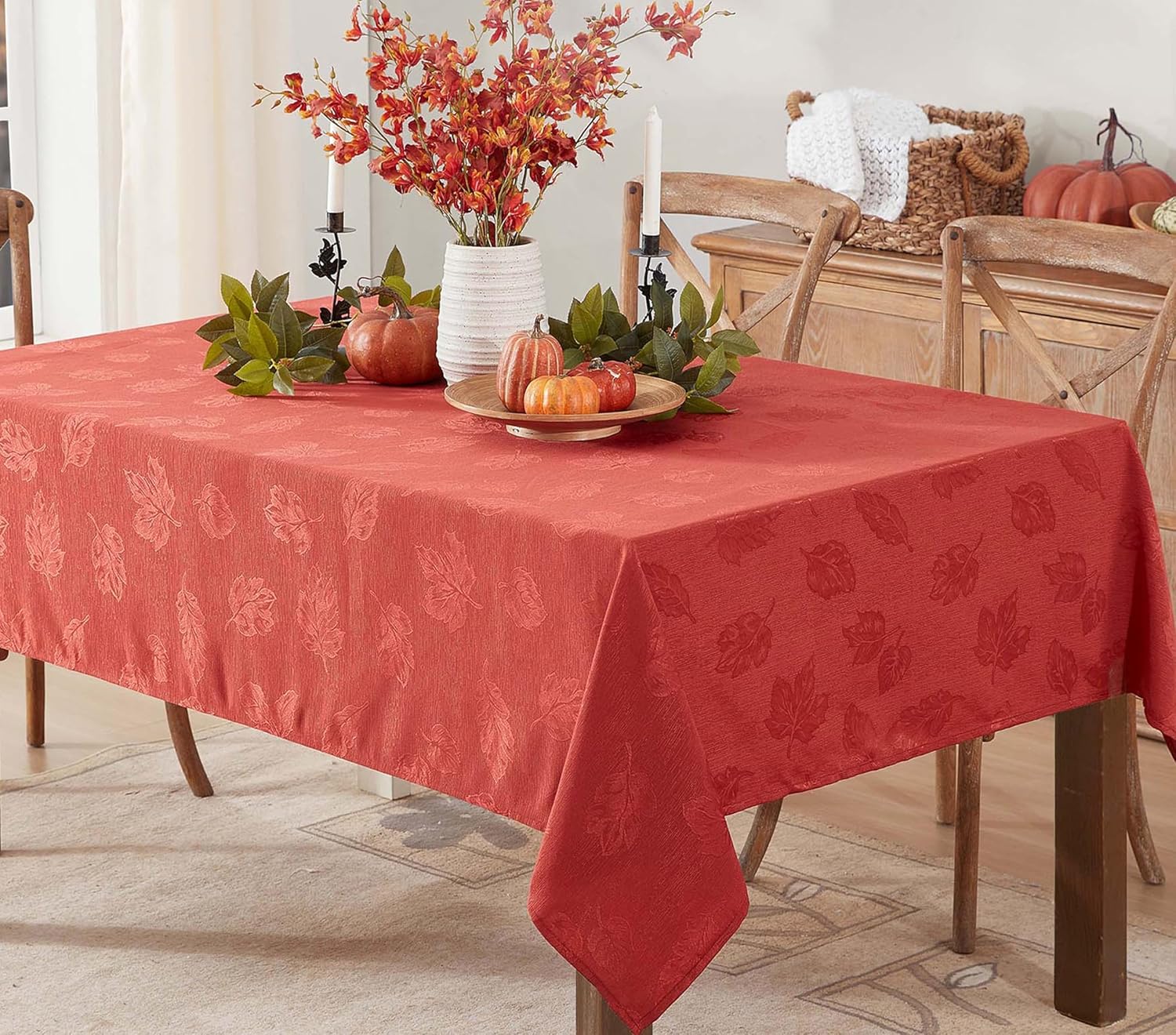 | Fabric Type | Holiday Woven Damask Tablecloth - Easy Care 100% Polyester, Soil Resistant, No-iron. |