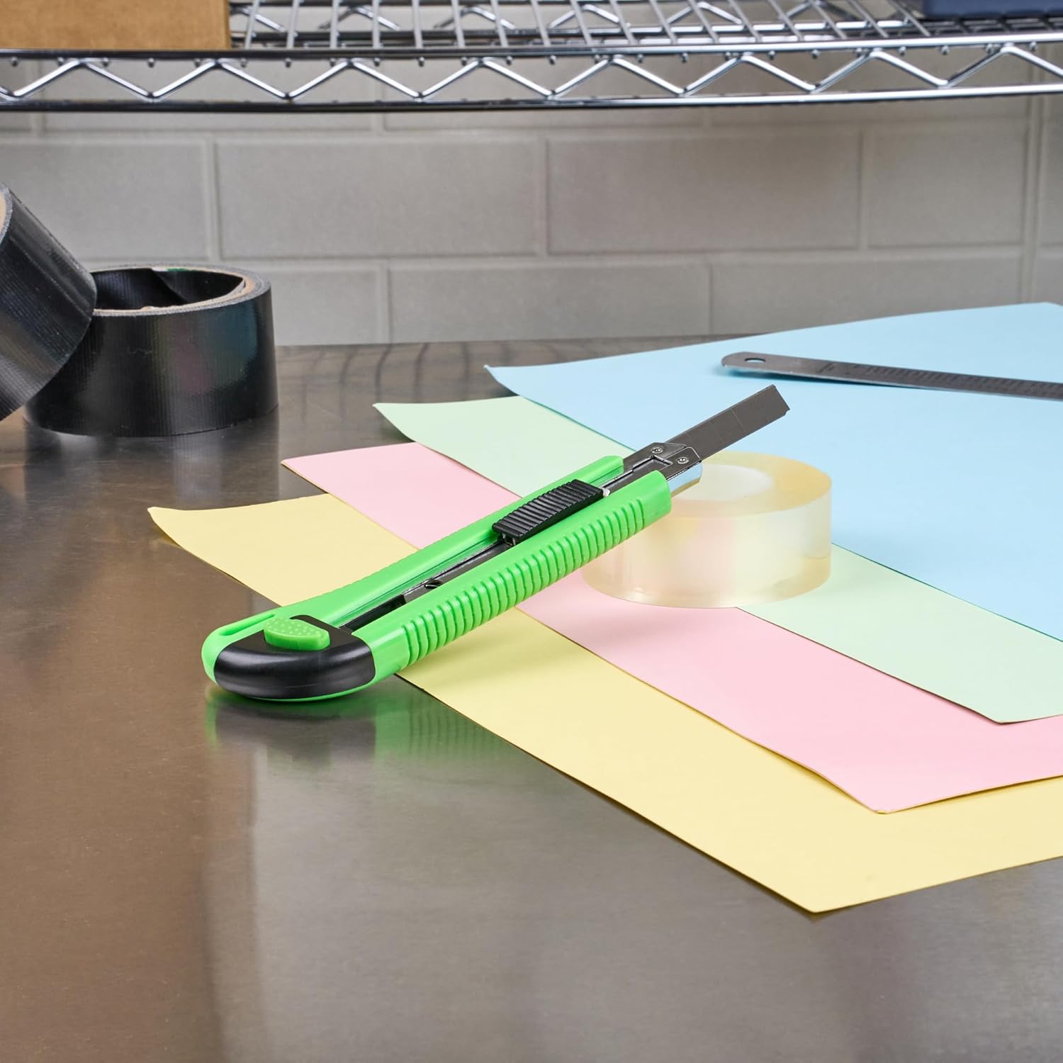 Elevate your cutting experience with our Handy Tek Rectangle Green Plastic Snap Off Blade Knives. These utility knives feature a no-slip handle that ensures a firm and secure grip while cutting, making them ideal for various tasks. With an auto-loading system, these cutting knives automatically load a new blade once the existing blade becomes dull, offering optimized efficiency. The auto-lock design in these heavy-duty knives avoids accidental blade movement, significantly reducing the risk of cuts and injuries. With high-carbon steel blades, these box cutters provide superior sharpness and exceptional edge retention. The retractable blade design of these sharp knives offers enhanced protection by allowing the blade to be securely stored within the handle when not in use, minimizing the risk of accidental cuts. Equipped with a pusher, these sharp cutting knives allow the user to extend and retract the blade, offering precise control over blade length and protection when not in use. These premium cutting knives are made from durable plastic and do not break easily, making them ideal for long-lasting use. Measuring 6.7 inches in length by 1.7 inches in width, these snap off blade knives have an 18-millimeter wide blade and are ideal for various tasks. Sold in 12 count boxes with 12 knives and 36 blades.