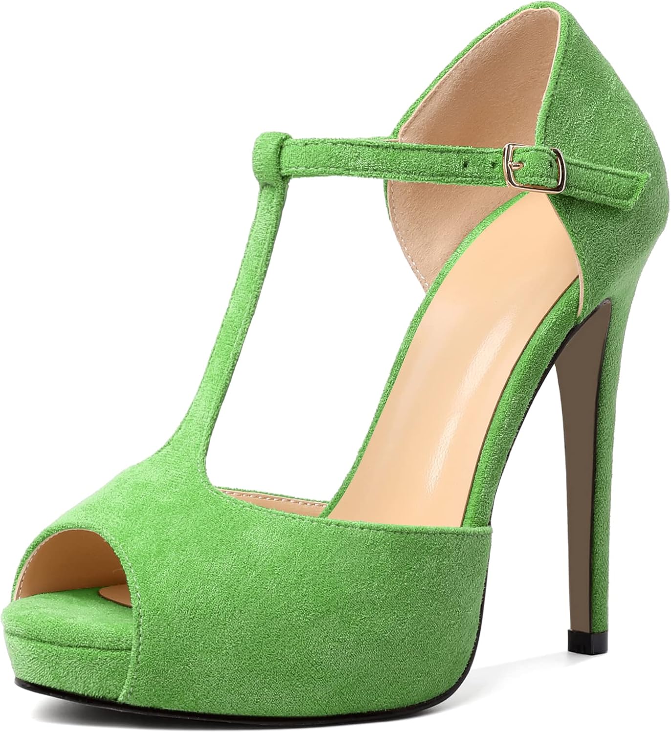 | Special Features | ankle strap, buckle, peep toe, suede heels, t strap |