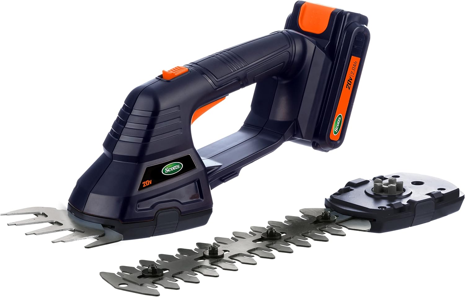 Scotts 7.2 volt shrub shear with extension pole is designed to make your outdoor tasks easier, so you can accomplish them faster. This edger is maintenance-free because it has an planet friendly design that only requires a battery to function. It is lightweight and easy to use, so you can beautify your garden comfortably. There is an interchangeable blade system that doesn't require special tools to be changed. This battery-operated hedge trimmer is convenient and reliable for any cutting and trimming tasks in your garden. The 6.7" shrubbery blade and 3.5" grass shear blade gives you optimal versatility for your gardening tasks at hand. This small electric hedge trimmer has a telescopic handle so you can easily trim grasses and weeds without bending over.