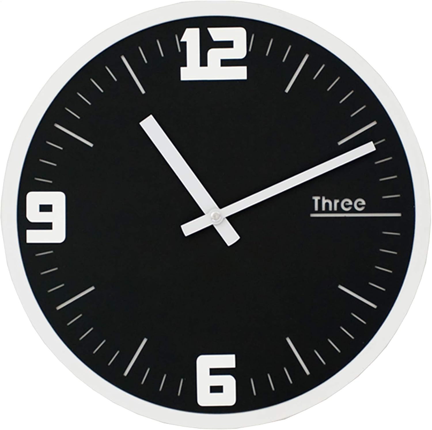 Designed with the modern home and office place in mind, these contemporary wall clocks challenge traditional design aesthetics by using materials and designs that are eye-catching and modern. Browse our growing collection of wall clocks to find your perfect match.Bold numbers and black and white colors (and sometimes a splash of red) make up our Black and Bold Collection which was inspired by the edgy and bold design esthetic of the 1960s. Designed to fit seamlessly in any space and add that adequate touch of elegance. Great for any space where you want to make a bold statement.Measures 12” X 12” and features a polished black acrylic dial that is 0.6” thick. The clock hands are made of red aluminum and the clock face features a numerical dial. Operates with 1 AA battery which is not included.Clock is completely silent thanks to a special Silent Quartz Mechanism that features a continuous, high torque smooth sweep motion that completely eliminates any ticking noise which may distract or interrupt you or others in the room.Hanging hook on back of clock allows you to easily hang this on any nail, screw or wall hook. Is suitable for home or office use and also makes a great gift. Our collection of eye-catching wall clocks creates a contemporary focal point in any room you put them in, making them both a practical and stylish addition to your home.Dial Material: FORESCOLOR EcoboardColor: Red on BlackSize: 12” X 12”Thickness: 0.6”Clock Hands Material: Red AluminumWeight: 1.1 lbs* FORESCOLOR is a range of engineered colored MDF boards that are durable and maintain appearance in tough environments.