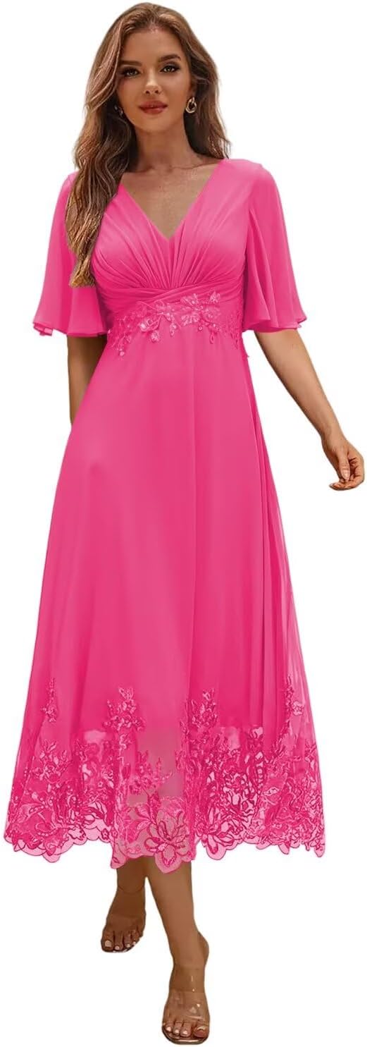 | Embellishment Feature | Aline, Chiffon, Lace Applique, Short Sleeve, V Neck |